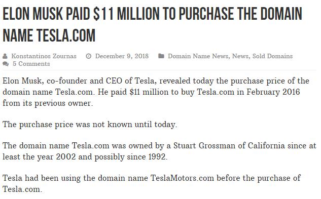 時隔兩年特斯拉域名價格終曝光!5個字符賣出1100萬美元!