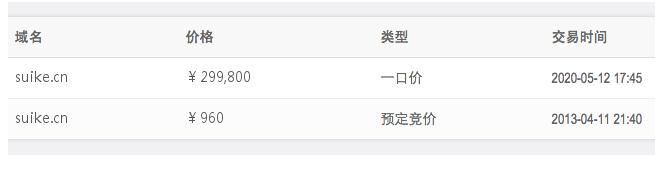 昨日,雙拼域名suike.cn以一口價29.98萬成交,該域名曾在2013年以960元成交過,7年時間價格翻了312倍,恭喜賣家!