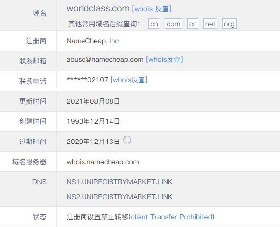 查詢whois發(fā)現(xiàn),域名worldclass.com注冊于1993年12月,距今已有28年歷史了。作為單詞組合域名worldclass.com有“世界級、世界一流的”的含義,域名由兩個知名、常用詞的組合。前面的單詞是world“世界、地球”,后面的單詞是class“班級、等級、社會階級”,拆分后很簡單能看出來該域名的優(yōu)勢,因為用戶很容易就能記住它。同時,與之相關的后綴全部都已經(jīng)注冊,并且時間最晚是worldclass.cc在2019年注冊,最早的可以追溯到1998年的worldclass.net,此外.cn在2012年注冊,.com.cn在2006年注冊。而且,除了域名之外還有相關的雜志、會議、高精尖科技都會以“worldclass”來定義。